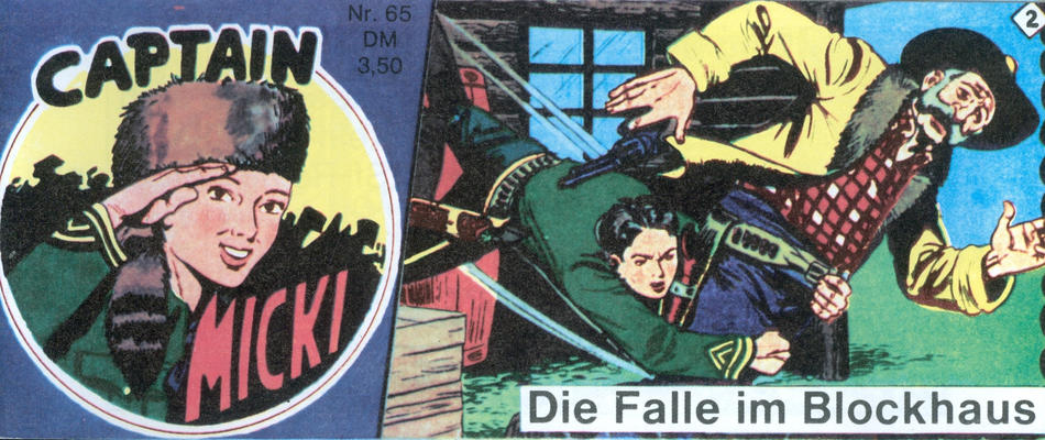 Die 1953-1958 vom Semrau-Verlag in Deutschland veröffentlichte Serie “Wild West” wurde unter dem neuen Serientitel “Captain Micki” vom Bernhard Groth Verlag und Norbert Hethke Verlag ungekürzt, nach dem italienischen Original, im Piccolo-Format durchnummeriert veröffentlicht. Das Heft Nr. 2 des 3. Zyklus entspricht der laufenden Nr. 65.