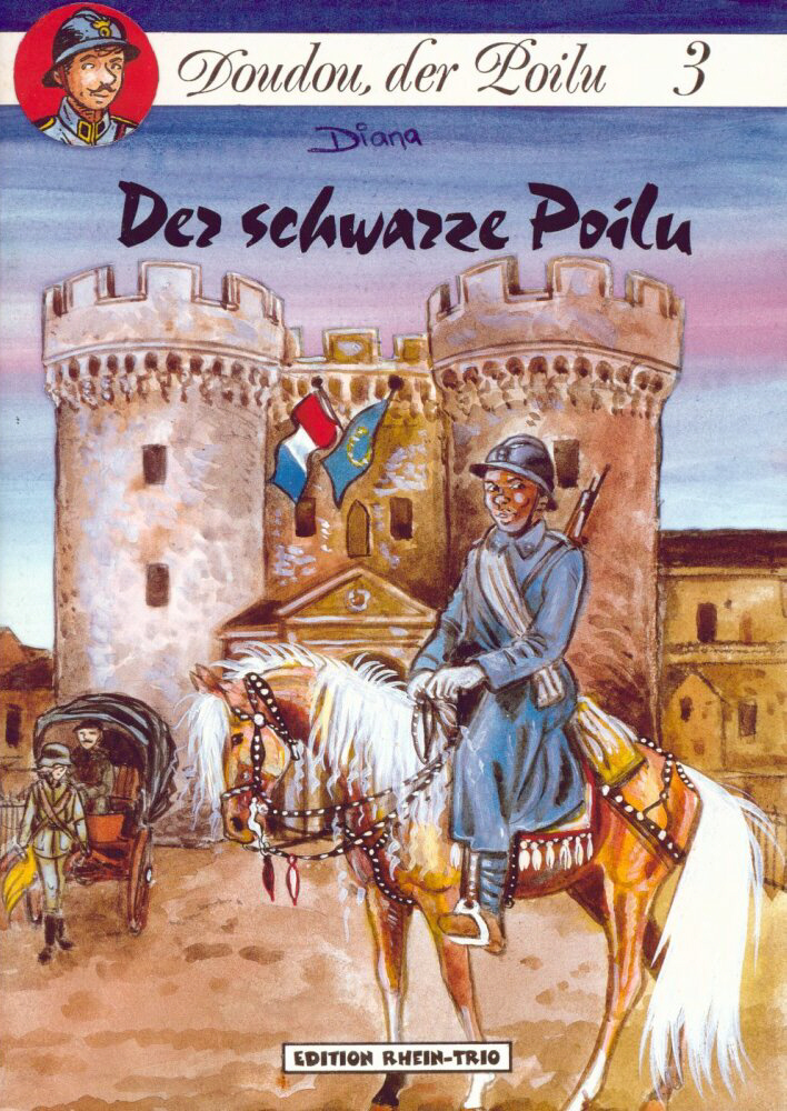 „Doudou, der Poilu“ ist ein Comic, der Seinesgleichen sucht. Wo sonst begegnen Ihnen vier- und zweibeinige Pferdedeutsche, jene sanften und wunderschönen Geschöpfe, die in Frankreich und Europa einer fernen Zeit als Reittiere dienen. Nur die Wehrmachtsblusen und die Stahlhelme erinnern daran, dass diese friedlichen „Deutschen“ einst kriegerische Vorfahren hatten. Die Reihe spielt in einem eigenen Universum; einer Parallel-Welt, in der Figuren und Fakten der realen Geschichte durcheinander gewürfelt sind. Doudou ist ein freier französischer Krieger und Jäger der durch ein dünn besiedeltes Europa zieht. Dort gibt es auch die »Pferdedeutschen«; faszinierende Wesen, halb Pferd halb Mensch. Kostüme und Uniformen sind dem Ersten Weltkrieg entliehen, die Serie spielt aber nicht im Ersten Weltkrieg, dies gilt es gegenüber Erstlesern zu betonen. Doudou ist in erster Linie als Fabel zu verstehen: Dabei wird nicht nur Europäische Geschichte aufgearbeitet sondern auch der Umgang des Menschen mit dem Tier thematisiert.