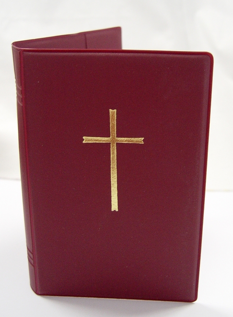 Plastik-Einsteckhülle, wattiert, Farbe: weinrot, Mit Prägung: Gold-Kreuz, Material: Kunststoff, passend für das Neue Gotteslob, Maße: 18 x 12 x 4 cm.