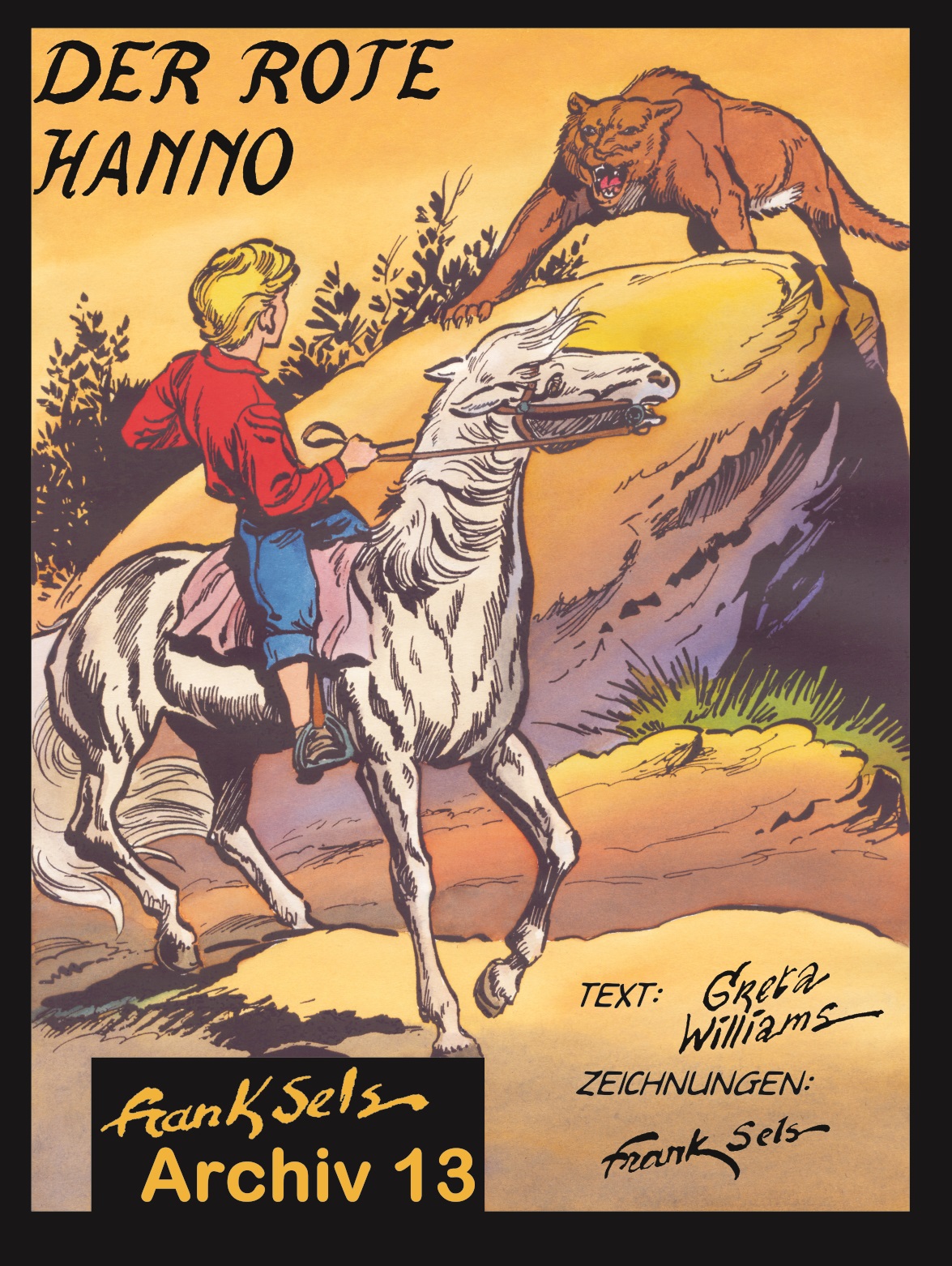 Diese Arbeiten aus unterschiedlichen Genres sind gebündelt unter dem Signet FRANK SELS ARCHIV erschienen. Beginnend mit AUF DER SUCHE NACH ALFADIR, das eigentlich der SILBERPFEIL-Nachfolger bei BASTEI werden sollte, jedoch seinerzeit abgelehnt wurde, folgen danach chronologisch die in Belgien meist in dem Magazin OHEE publizierten Werke. Manches davon lohnt einen Blick und hätte unter anderen Umständen auch Potenzial für eigene Reihen gehabt.